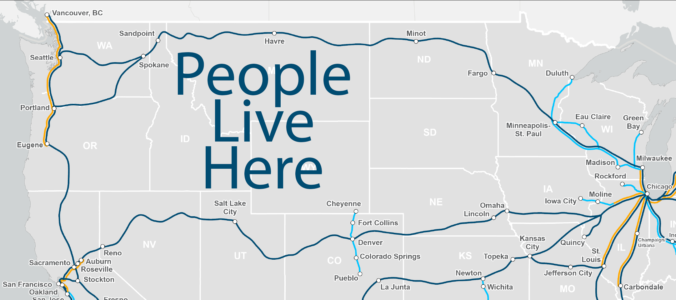 People Live Here! All Aboard Northwest is the Greater Northwest Passenger Rail Working Group, working to bring economic, environmental and equity benefits to the communities of the Greater Northwest.